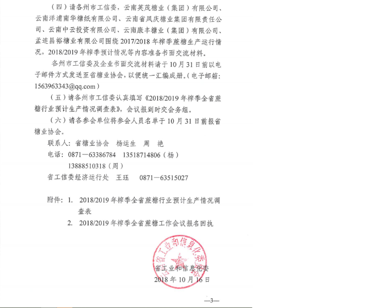 关于召开2018/19榨季云南省蔗糖工作会议的通知
