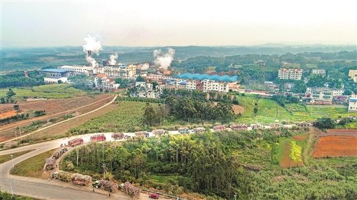 2018年,象州县共实施“双高”糖料蔗基地152个,片区面积11.5万亩,提前一年完成自治区、来宾市下达的建设任务,预计2018/2019榨季全县进厂糖料蔗76万吨。图为该县东糖石龙公司外排队等候进厂压榨的运蔗车排成了长龙。