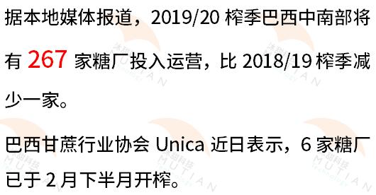 巴西中南部:2019/20榨季开榨糖厂同比减少一家