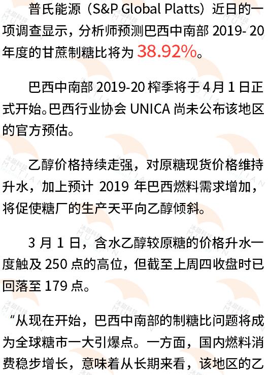 调查:巴西中南部2019-20榨季糖产量或同比增加7.7%
