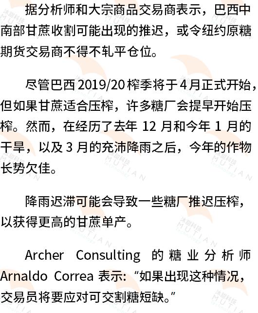 巴西延迟开榨或令原糖5月合约可交割量受限