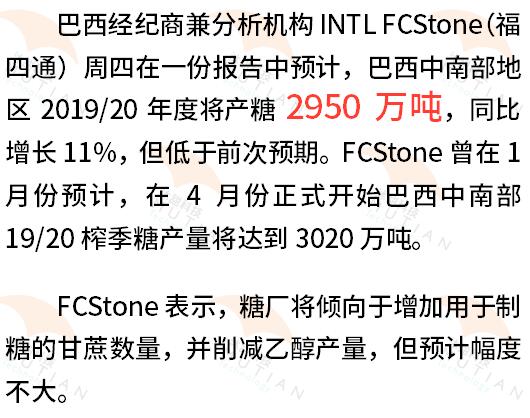 福四通:巴西中南部19/20榨季糖产量预计同比增加11%