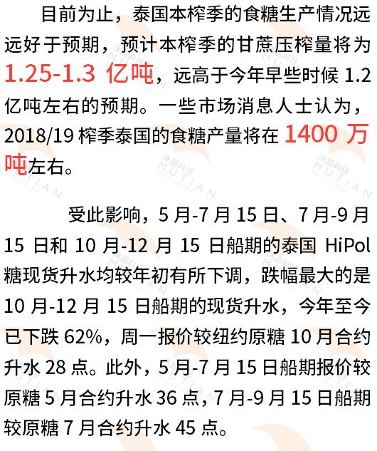 泰国:甘蔗产量预计增加 原糖现货升水降至3个月低点