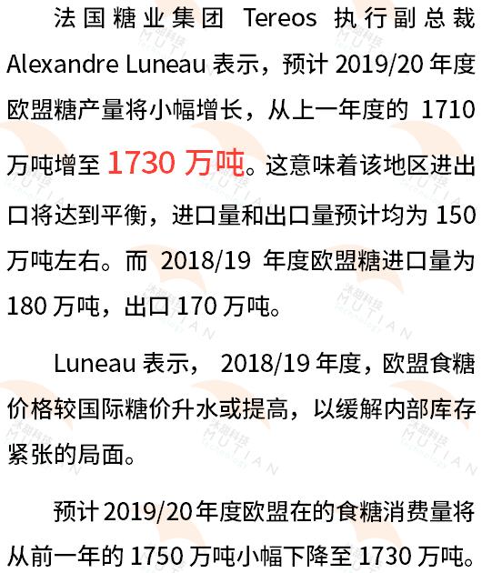 Tereos: 预计2019/20年度欧盟糖产量小幅增加