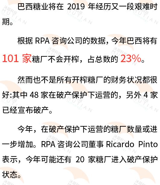 巴西:债务高企,2019年近四分之一糖厂不开榨