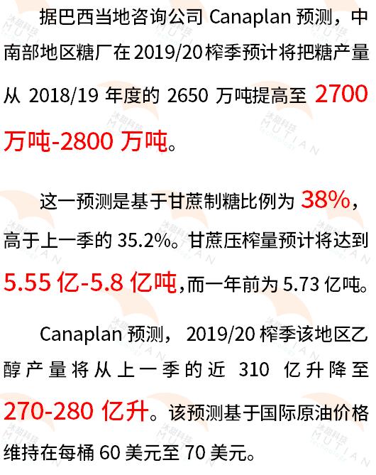Canaplan:巴西中南部19/20榨季糖产量或达到2800万吨