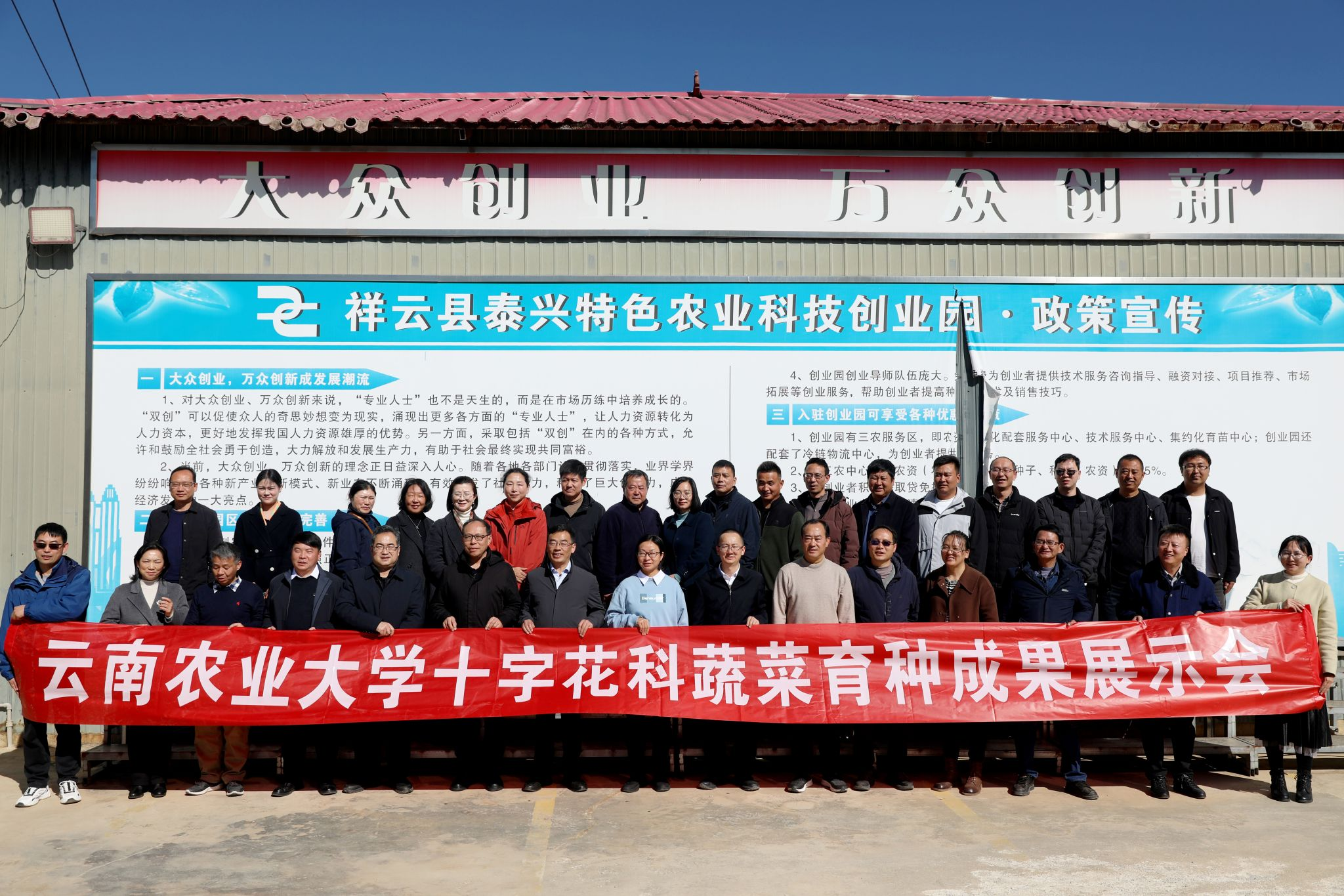 1月16日,学校十字花科蔬菜成果展示会在祥云县举行。副校长朱书生、云南省科学技术协会副主席李垠乐、云南省农业农村厅总农艺师可斌、云南省科技厅二级调研员吴杰、大理州科学技术协会主席李桂瑞、祥云县委副书记张建华、祥云县人民政府副县长叶植出席现场会。