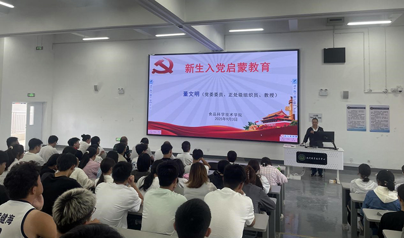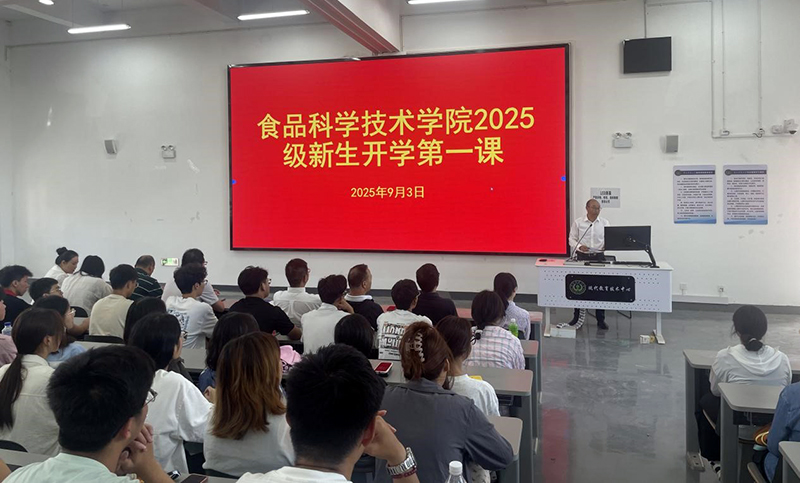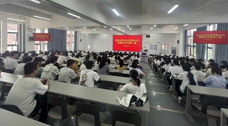 2025年9月3日下午4点,食品科学技术学院在正德楼D401开展2025级新生开学第一课。院领导班子成员、系主任、专业负责人、班主任、辅导员等参加,会议由党委副书记黄启超主持。