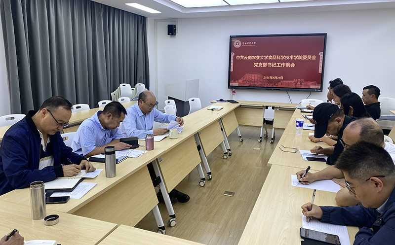 2025年8月29日,学院党委在二楼会议室召开8月份党支部书记工作例会。会议由学院党委书记李世俊主持,正处级组织员董文明、党委副书记黄启超及各党支部书记参加会议。