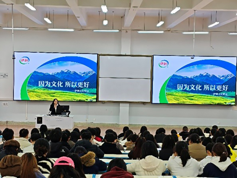 专题讲座上,字成庭副院长发表开场致辞,鼓励同学们科学规划职业发展,主动探索专业方向,明确个人发展目标,为未来职业道路奠定坚实基础。随后,伊利集团代表围绕企业文化、乳品加工技术的应用现状以及行业未来发展趋势等内容进行了系统介绍,并深入解析乳业前沿动态。在互动交流环节,同学们踊跃提问,就所关心的问题与企业代表积极互动,现场气氛热烈。与会学生普遍表示,此次讲座内容丰富、针对性强,对自身职业认知与发展规划具有重要启发意义。
