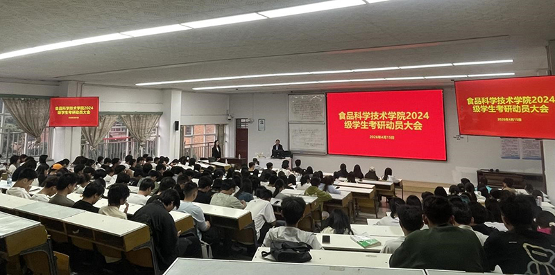 2026年4月15日,食品科学技术学院在厚德楼3-5教室召开2024级考研动员大会,全体24级本科生参会。