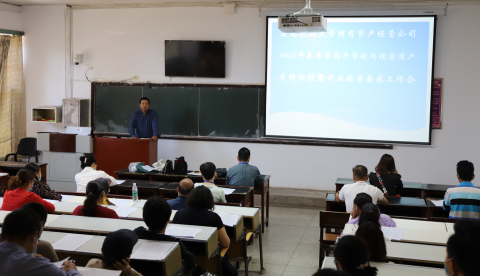 为进一步落实学校2020年春季学期学生返校后日常生活用品的保障工作,确保学生返校后在封闭管理期间正常生活秩序不受影响。2020年5月8日下午,国有资产经营公司召集校内47户商铺经营户参加会议,目前校内47家经营户共有从业人员198名,承担学校的日用百货、餐饮小吃、 理发、水果、快递超市、非机动车保管等服务工作,人员流动性大,监管难度高。针对这一情况,马红春总经理全面传达了省教育厅、学校对疫情防控及商铺开业经营要求,对学生返校后商铺经营后续工作进行安排部署。一是要严格做好从业人员的健康排查及每日体温测量及上报工作;二是要自觉遵守《云南农业大学国有资产经营公司2020年春季学期师生返校开学疫情防控工作方案》,严格按方案要求执行;三是要依法依规开展经营活动,不得哄抬物价,不销售伪劣、过期、禁售商品。