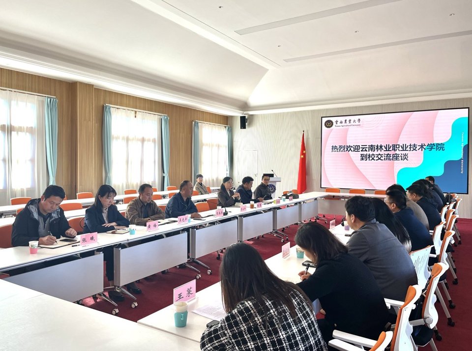 2023年11月10日,云南林业职业技术学院一行到校交流座谈,云南农业大学党委委员、副校长张慧同志出席交流座谈会。