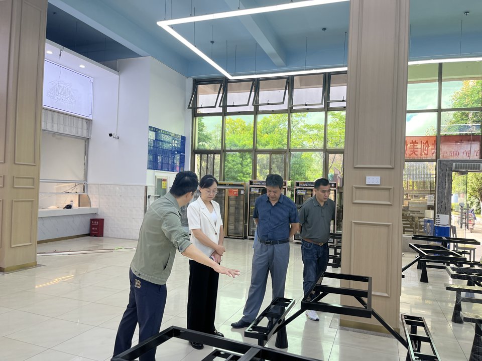 2024年8月26日上午9:30,张慧副校长到菽香园食堂、米饭生产线现场视察修缮改造进度,听取了后勤服务有限公司工作推进情况汇报。