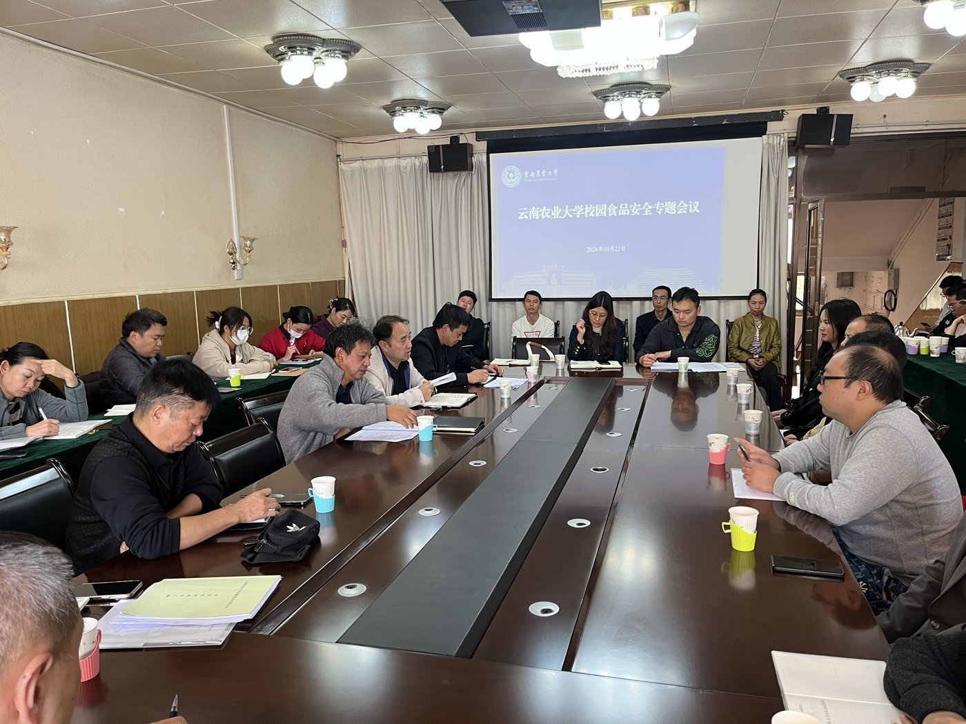 为做好校园食品安全工作,切实履行经营企业食品安全主体责任,10月22日,资产经营有限公司下属后勤服务有限公司组织食堂服务团队、各食堂负责人、大宗物资供货商等在东校区招待所二楼会议室召开校园食品安全专题会议,会议由资产经营有限公司总经理马红春主持,后勤保障服务中心主任吴光平参会。
