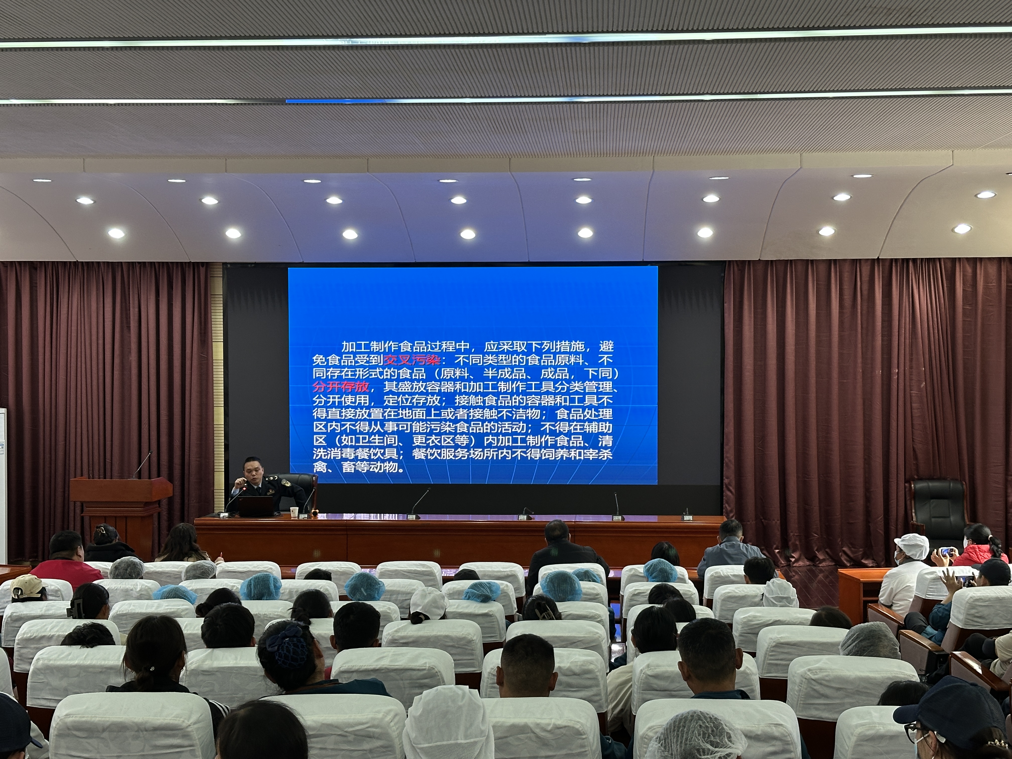 培训详细解读了《中华人民共和国食品安全法(2025)》《学校食品安全与营养健康管理规定》《集中用餐单位落实食品安全主体责任监督管理规定》等法律法规,强调了食品采购验收、库存管理、索证索票等原料控制关键点,并结合典型案例对病媒生物防制、专间管控、食品留样等事项进行了特别提醒。