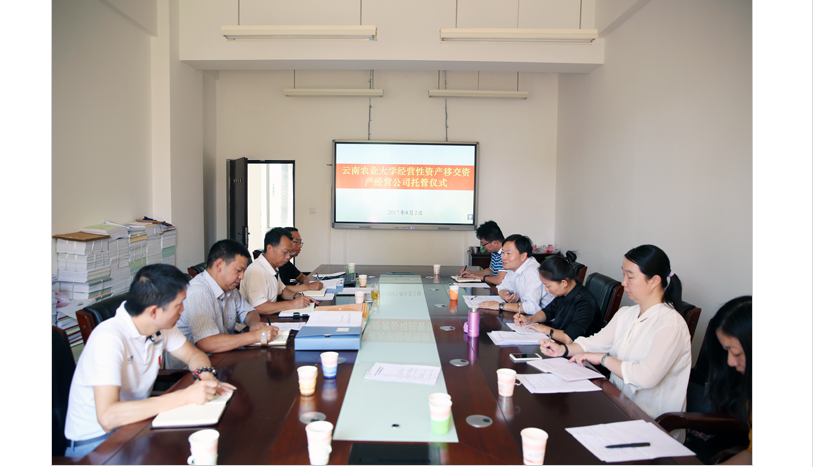 2017年8月2日上午,学校在养正楼C区106室国有资产管理处会议室举行经营性资产移交及委托管理仪式。彭志远副校长、省高原特色农业产业研究院张郭宏副院长及校纪委、人事处、财务处、宣传部、国有资产管理处、后勤集团、资产经营公司负责人参加移交仪式和委托管理仪式。