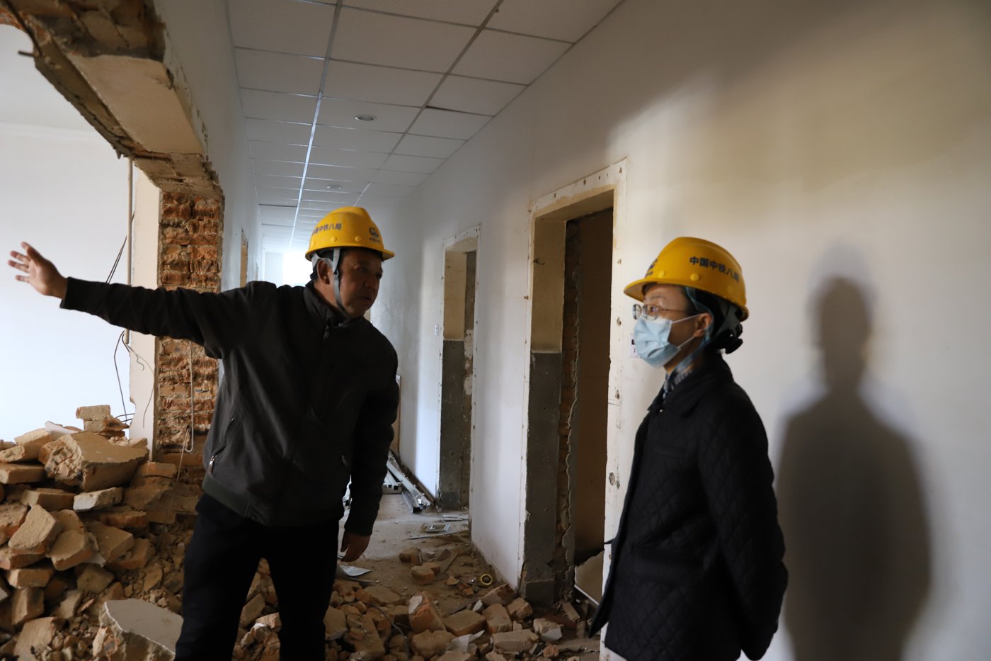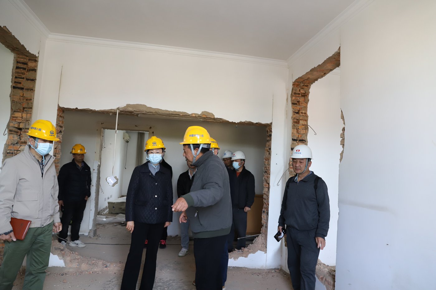 2025年2月19日上午,张慧副校长深入学校招待所修缮改造施工现场,实地查看工程进展,并对安全生产、施工质量及工期管理提出工作要求。资产经营有限公司及施工方相关负责人陪同。